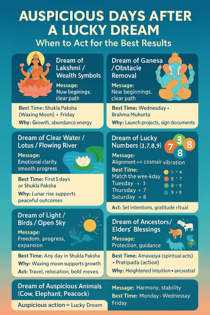 | Type of Lucky Dream | Core Message | Best Time to Act | Why This Timing Matters | Suggested Action |